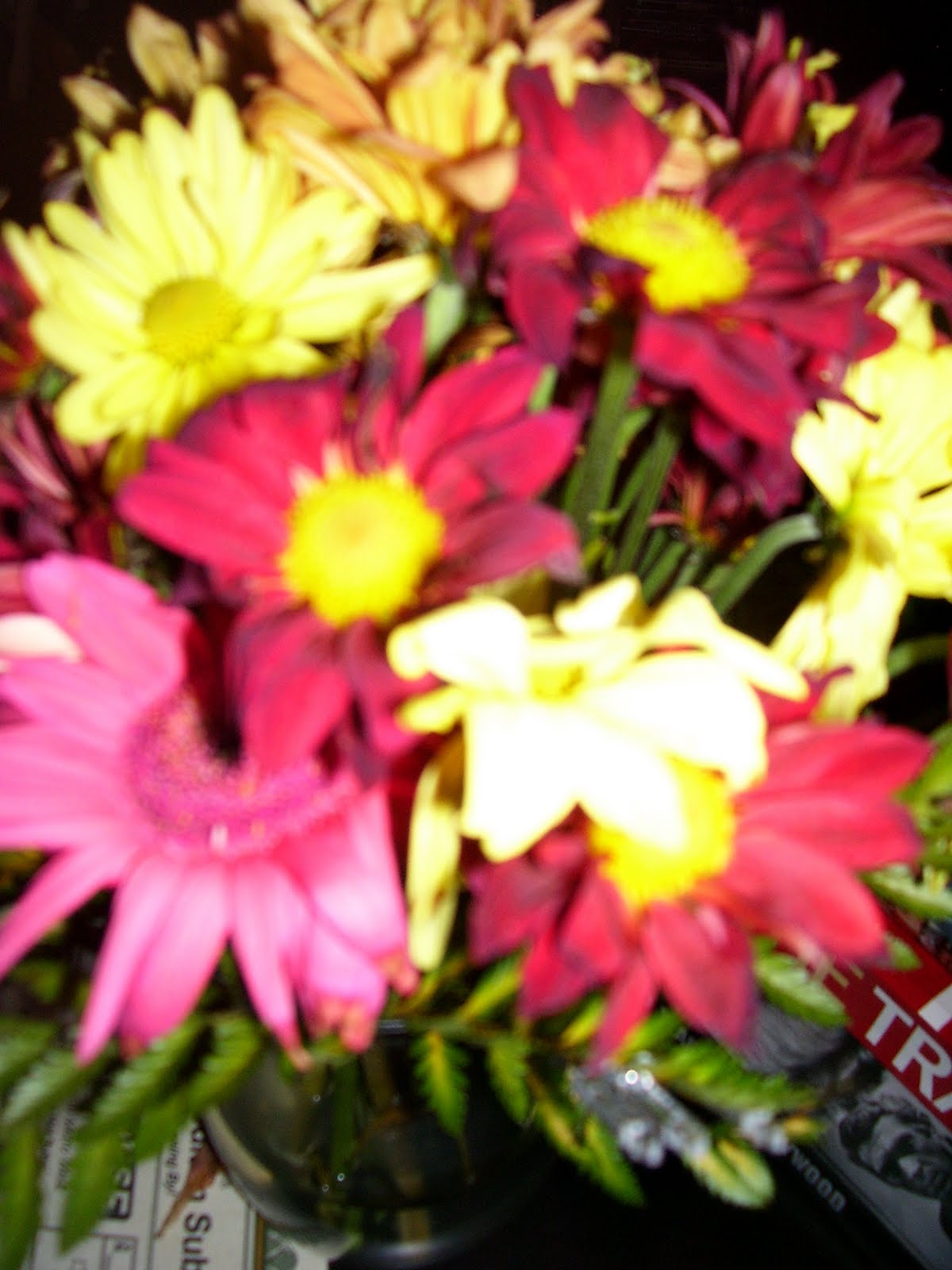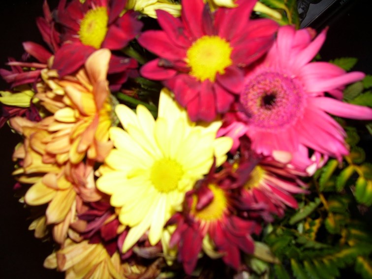 Do you remember the post several back about the hot pink daisy in a bouquet we received a day after the surgery? Well, in case you never read that post, or need a refresher, here’s another picture: