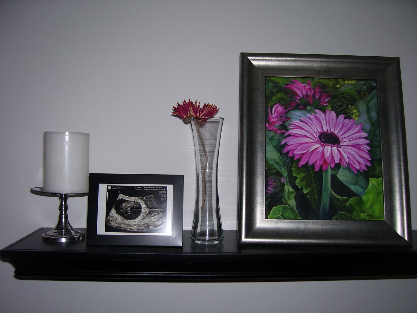 I have no idea what God is planning for us in the future and I am still hurting that it doesn’t include our first baby. But, if the Lord does bless us with more children some day, then they will always know that they have an older brother or sister in Heaven. So, for now, I am happy that our baby has at least one framed picture, a candle in his/her honor, a beautiful flower in a pretty vase, and a gorgeous painting. There’s a peace in knowing there are physical items that will stay with us forever, on display, for everyone to see our first baby.
