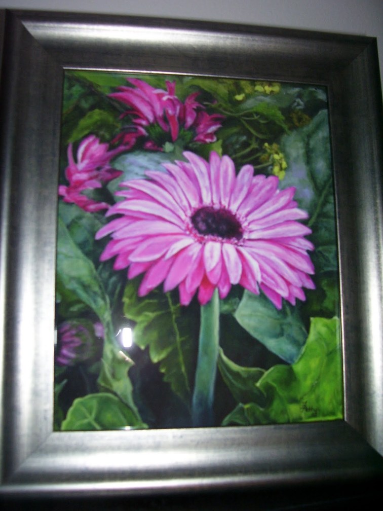 Can you believe it’s a pink daisy in this painting?? John and I even searched around on the internet to see if maybe pink daisies had something to do with miscarriages. Nope, nada. I just adore this painting and I am glad that our dear friend thought enough of us to go out of her way to get it! I am still in shock at how this whole pink daisy thing has happened. So weird! But, in a good way :o)