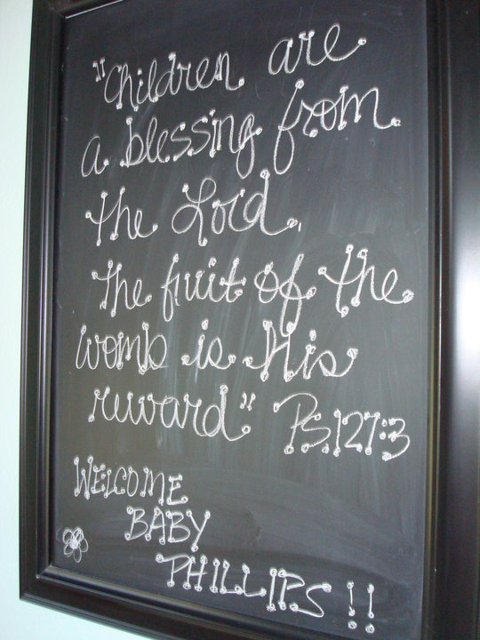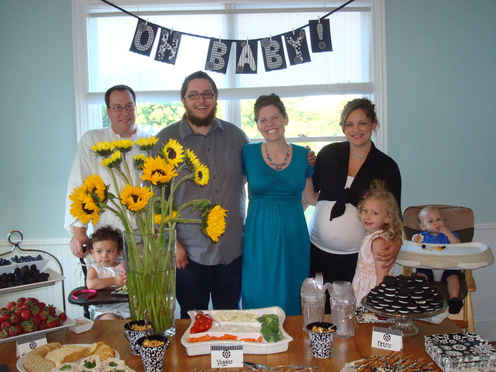 Oh, and a quick tally on boy or girl votes, two young ladies at the shower told me they think boy! Then, a random stranger in the airport on the way home insisted we were having a boy based on my belly. And, the other day a lady in the grocery store asked if we were having a girl. So, the votes keep coming in, but they keep stacking up on the blue side! Our niece, Anna (the cute little blonde next to her mama in the picture above), made a card for the baby that she gave us at the shower. It says, “Baby, are you a boy or a girl?” John and I often ask the same question to the baby ourselves, Miss. Anna :o)