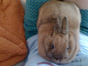 I first adopted Mega in March of 2008, when he was 3 months old. I had just moved into my own apartment all by myself that January and really wanted some company. I always thought it would be fun to have a rabbit, so off I went to find a rabbit. No lie, totally fell in love with Mega. Don’t tell him, but in person, he’s like the fattest rabbit I’ve ever seen and that just sounded so cuddly to me! So, I got everything I needed to take care of the little guy and went to the pet store before they opened on the first day I was allowed to get him (around Easter time they wouldn’t sell the rabbits for a while because of too many people having buyer’s regret). So, there I was, like a freak, waiting in the parking lot to be the first one in the store in case some small child in pigtails wanted the same rabbit. I was prepared to push any small children over, because that was my rabbit. Creeper? Yeah, I know. Whatever.