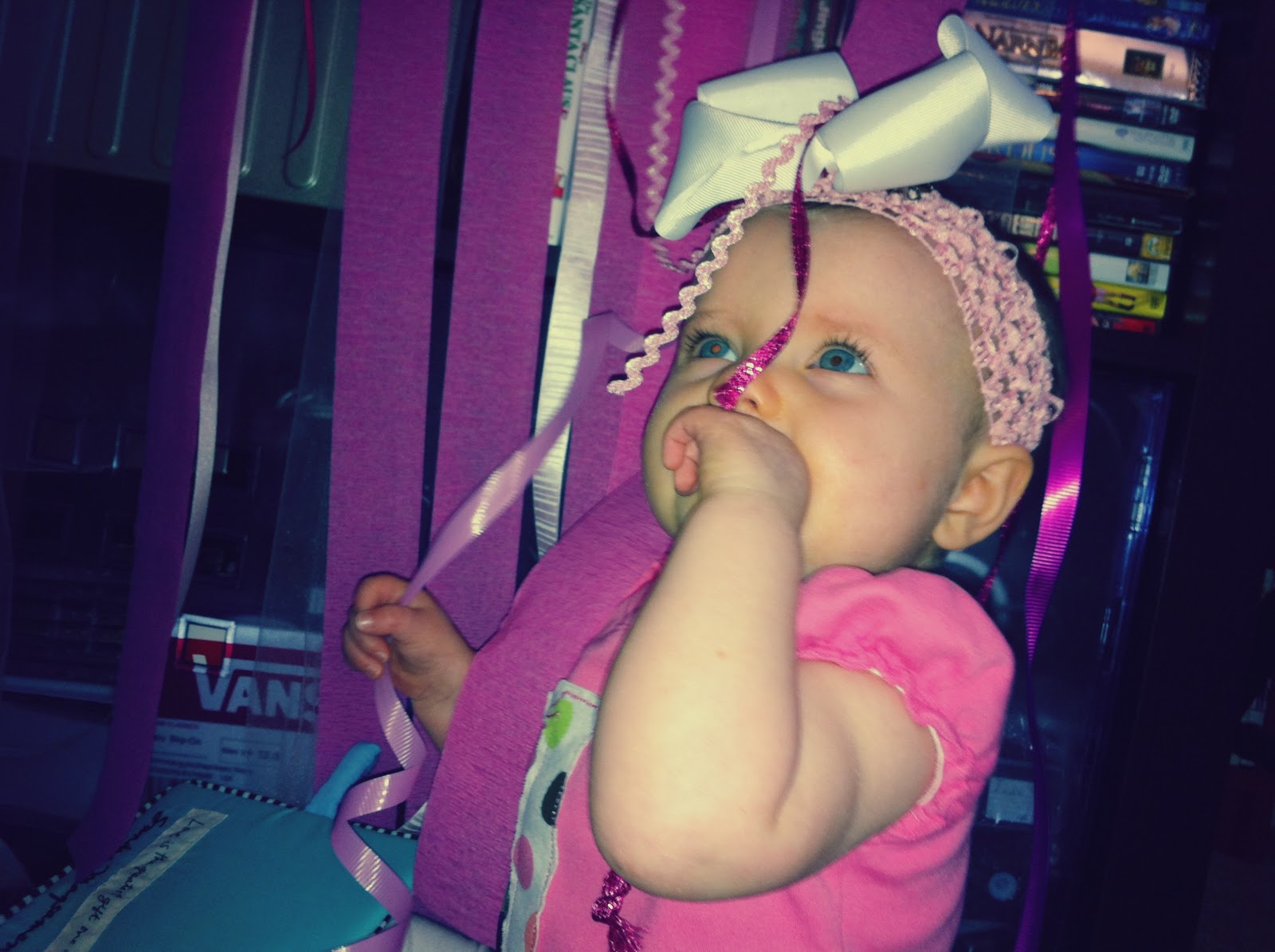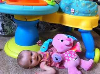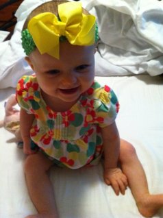 –She is SO girly. Her noises, her squeals, her tone, the way she crosses her legs, the way she holds her hands, etc. She is just the girliest baby I have ever met! You take the pink away from her, and the hairbows and simply by her voice and mannerisms, you would KNOW she’s a girl. And, can I tell you something? I totally love it!!