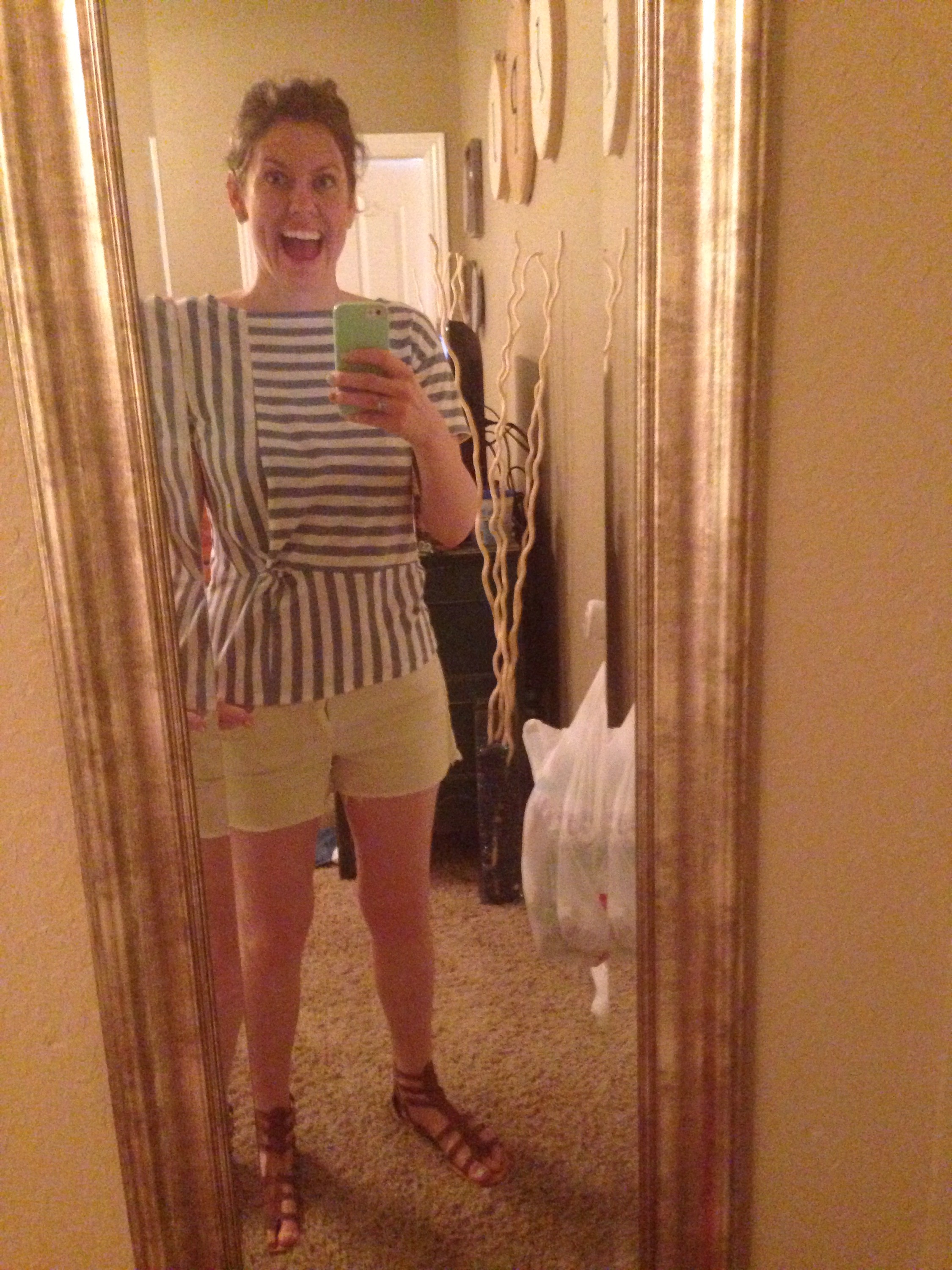 2) Trying to take my first pictures for What I Wore while the photog husband is gone and the Littles run amuck? Awkward selfies.
