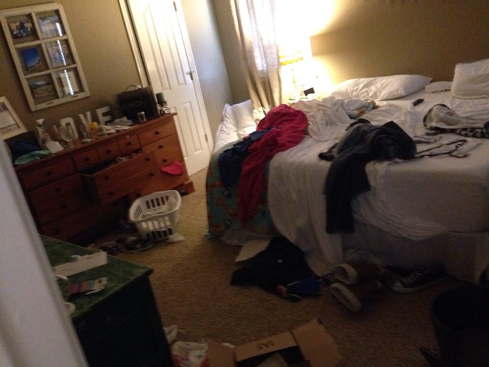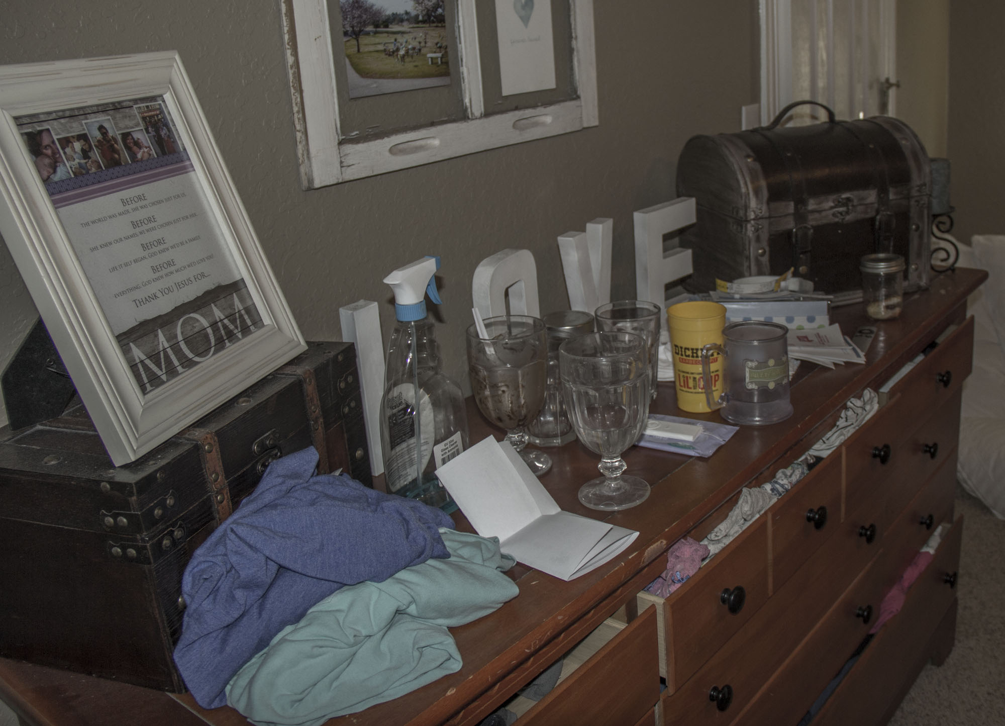 The other day I snapped a picture of our bedroom because it finally tipped over from “a little bit messy” to “mass chaos”. I was looking at the picture and noticed something.